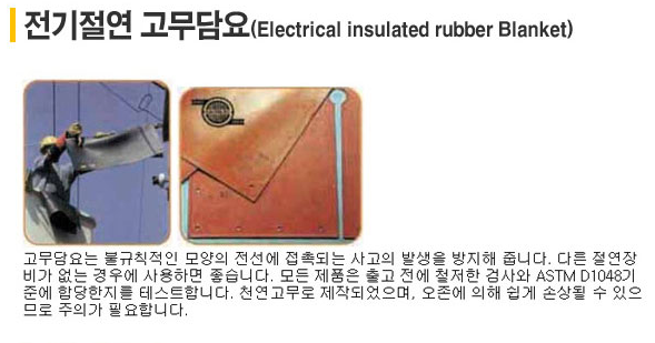 활선 작업시 작업자에게 위험한 충전 부분을 절연하기에 아주 편리한 고무판으로써 접거나 둘러 쌓을 수도 있고 걸어 놓을 수도 있는 다목적 절연 보호장구이다.