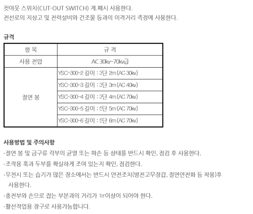 COS 조작봉 YSC-300-6 | 전기 작업용 절연 조작봉