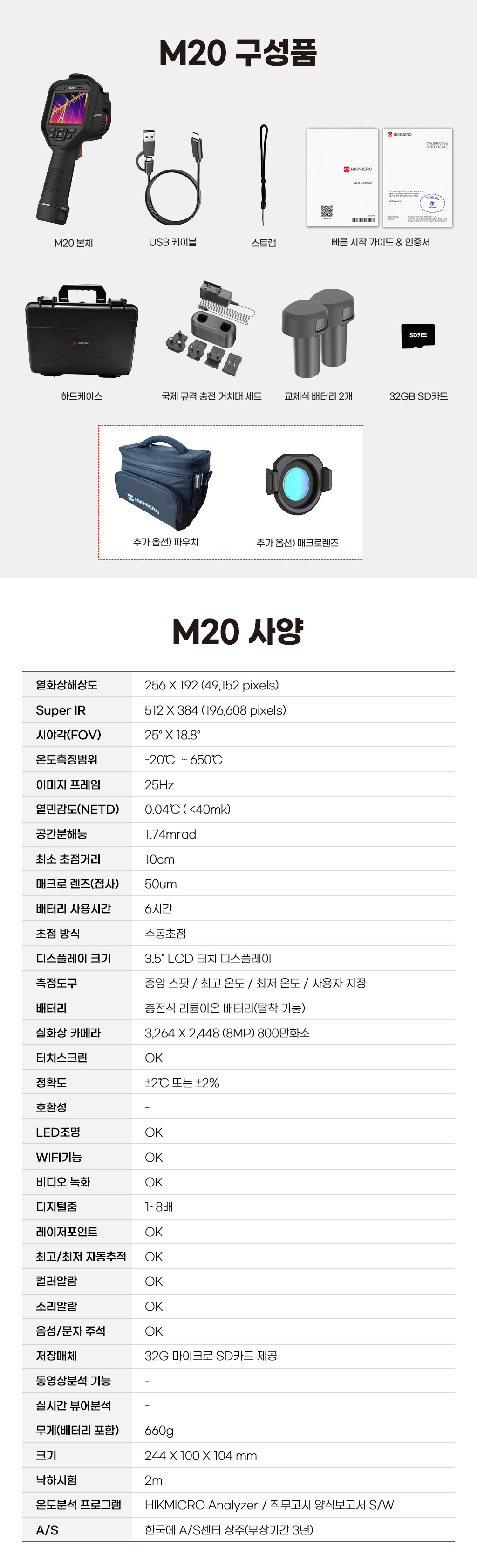 256×192, 25°×18.8°, Manual focus, NETD<40mk, 25 Hz, 8MPvisible camera, -20~550℃, ±2℃/±2%, 16GB, 3.5 inch 640×480LCD touch screen, LED light, Replaceable battery, Wi-Fi, Laserpointer