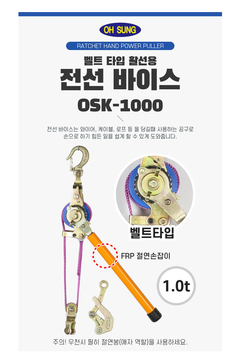 1톤급 하중을 견디는 절연 벨트형 장선기