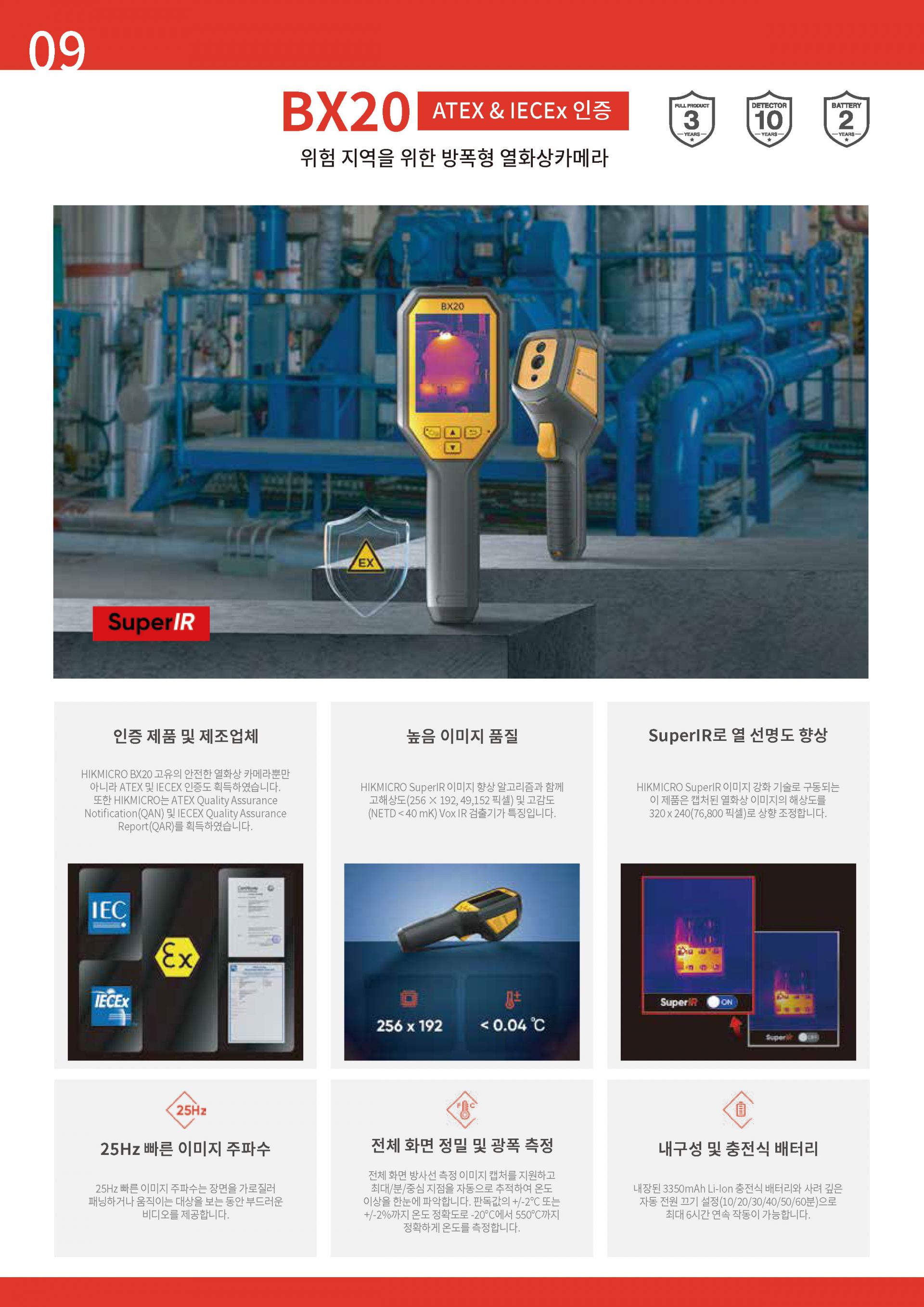 256×192, 37.2°×50°, 2MP visible camera, NETD<40mk, -20~550℃, ±2℃/±2%, 16GB, 3.2 inch 320×240 LCD Screen, IP64, ATEX&IECEx