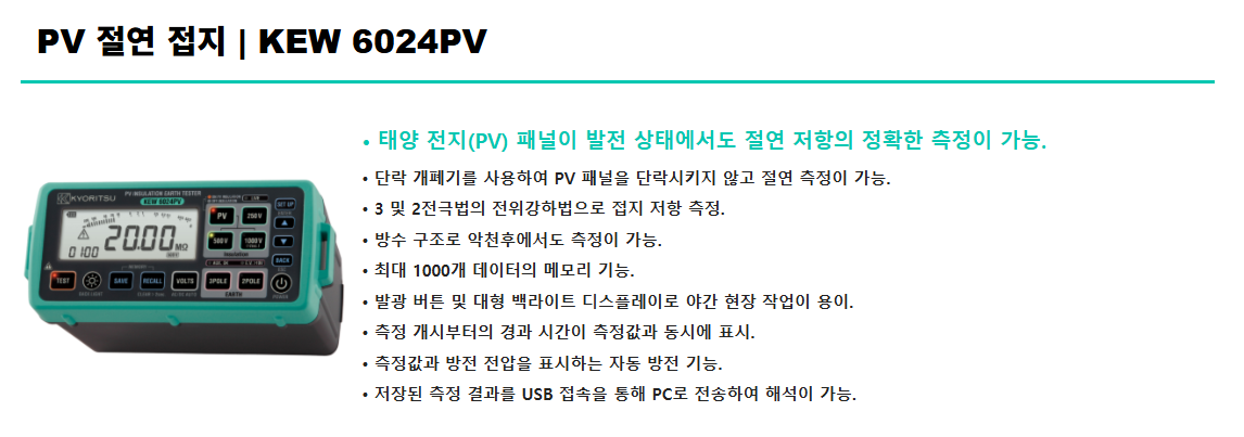 절연접지테스터 PV 절연 접지 KEW 6024PV