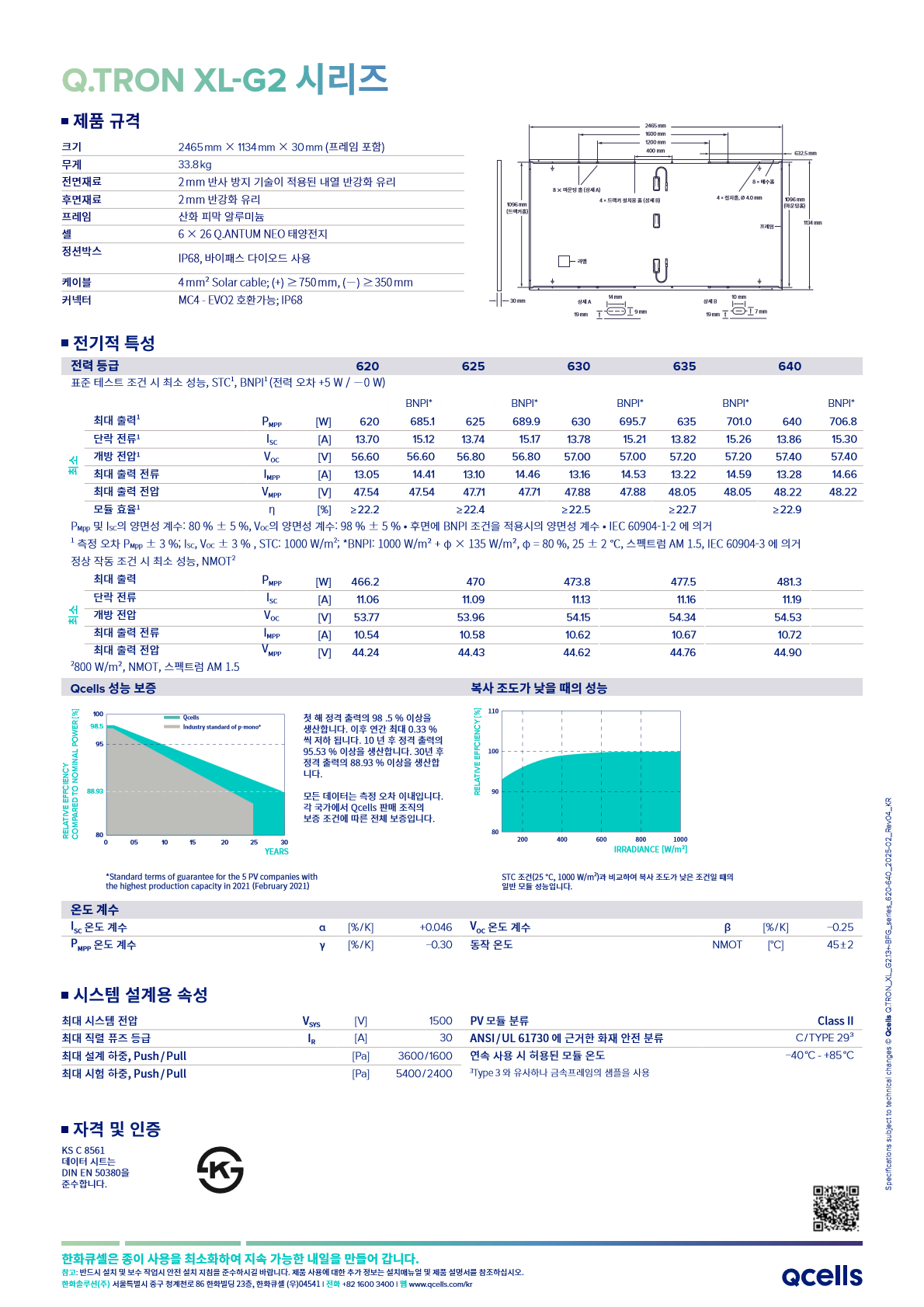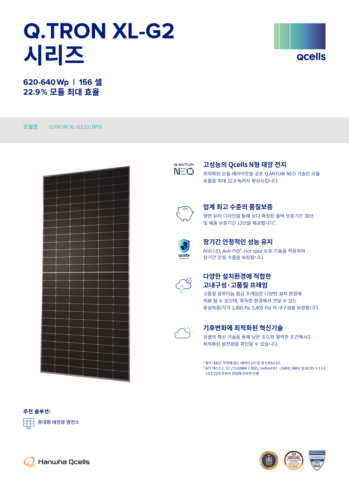 [한화솔루션] Q.TRON XL-G2.13 BFG, 640W (양면) 무등급 N타입