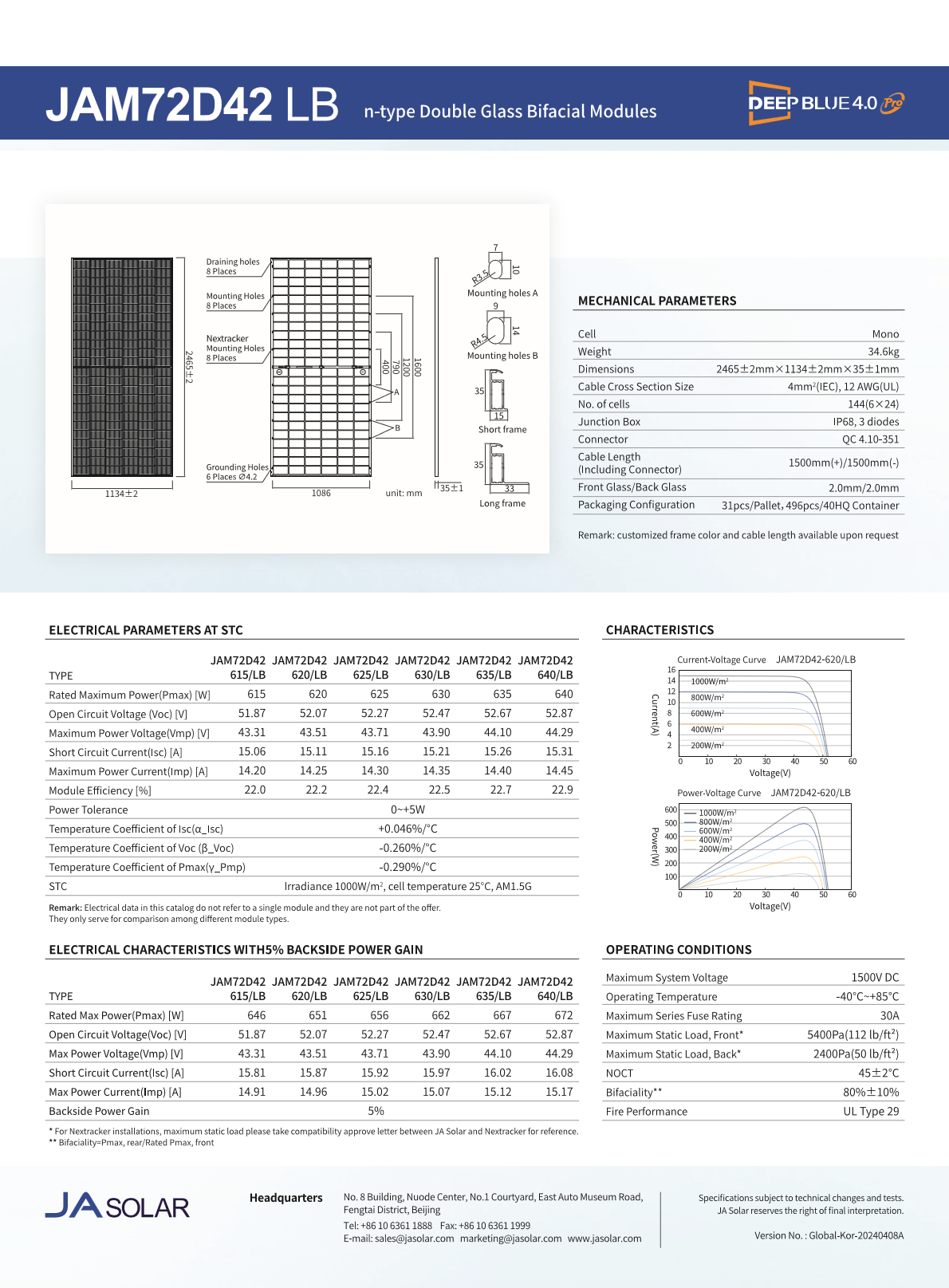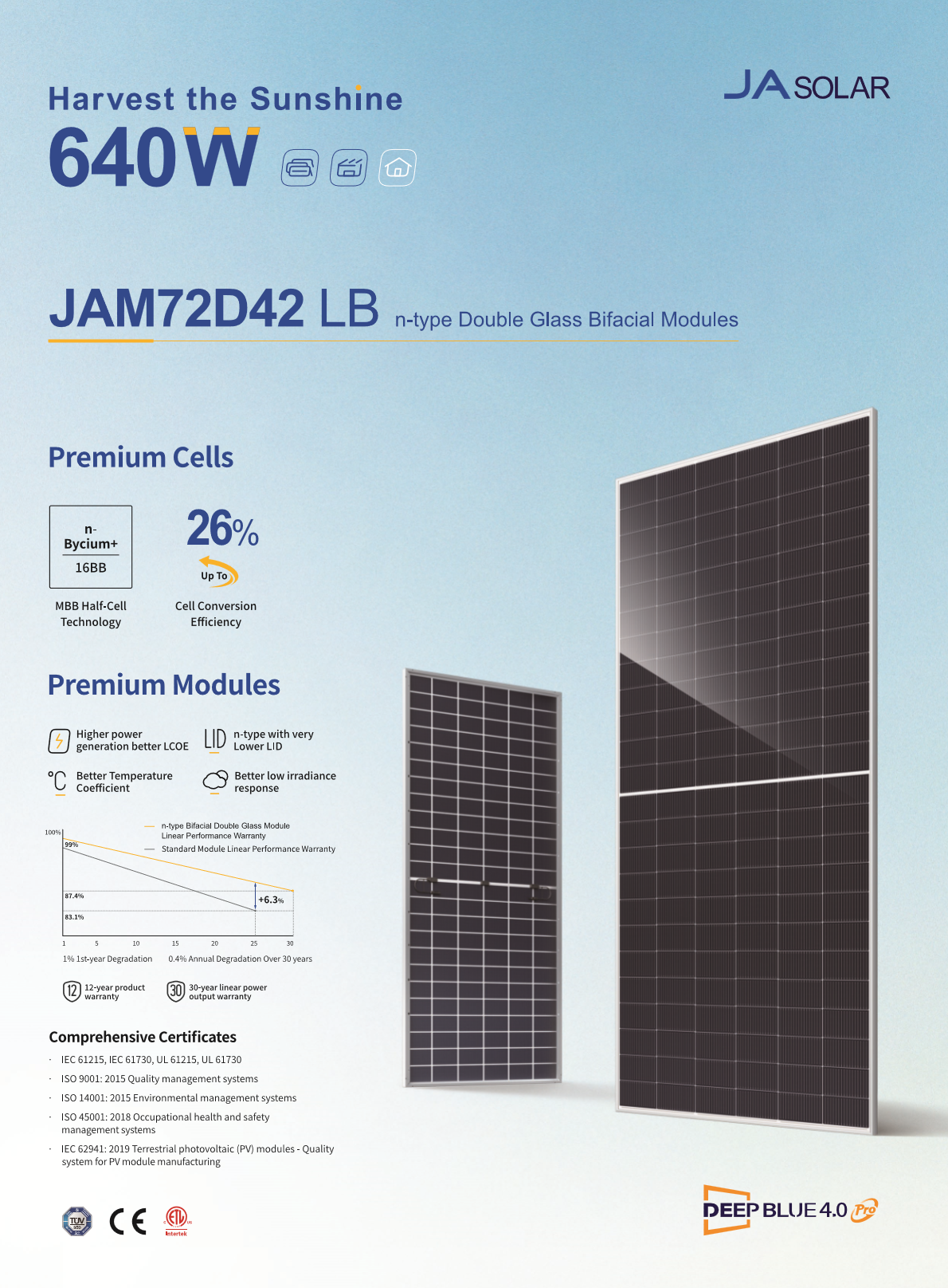 [JA솔라] JAM72D42-640LB, 640W (양면) 무등급
