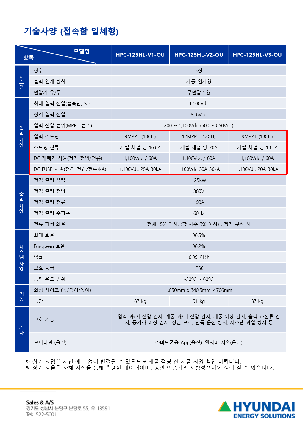 [현대에너지솔루션] HPC-125HL-V1,V2-OU, 110K (25A, 30A)