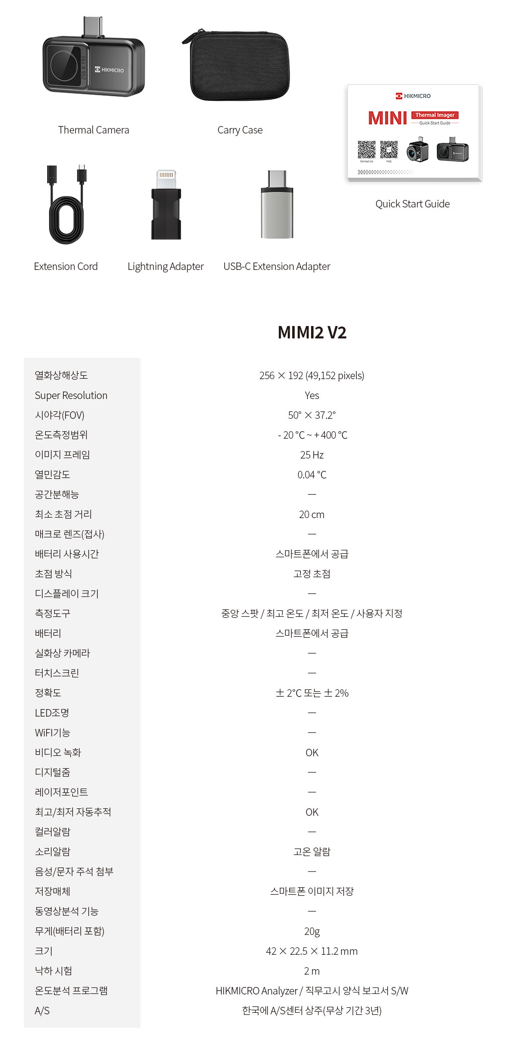 256x192, 50°×37.2°, NETD<40mk, 25Hz, -20~400℃, ±2℃/±2%, Type-C interface for Android phone