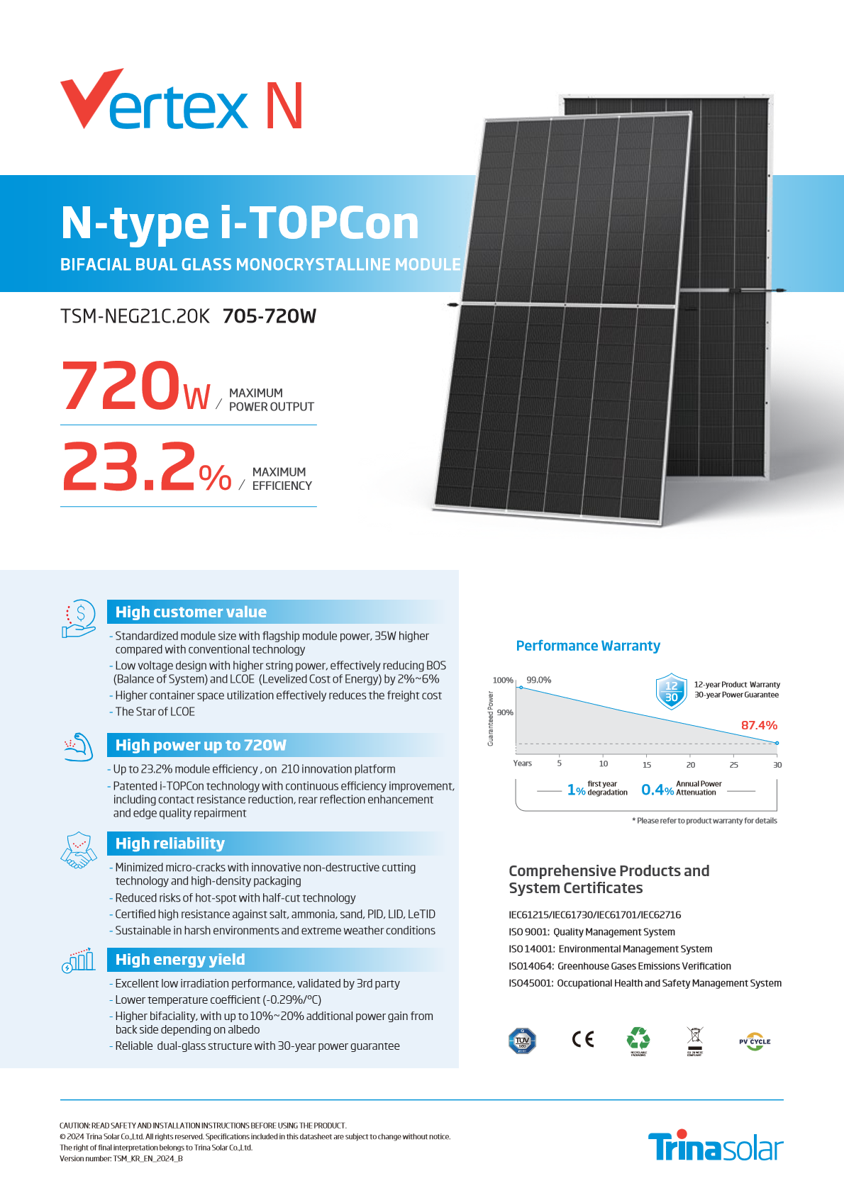 [트리나솔라] TSM-715NEG21C.20K 715W (양면) 무등급 N타입