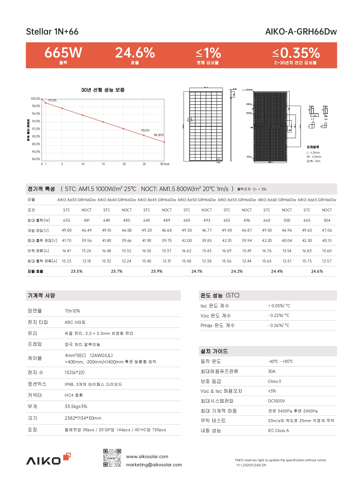[아이코] AIKO-A645-GRH66Dw (앙면) 무등급 645W