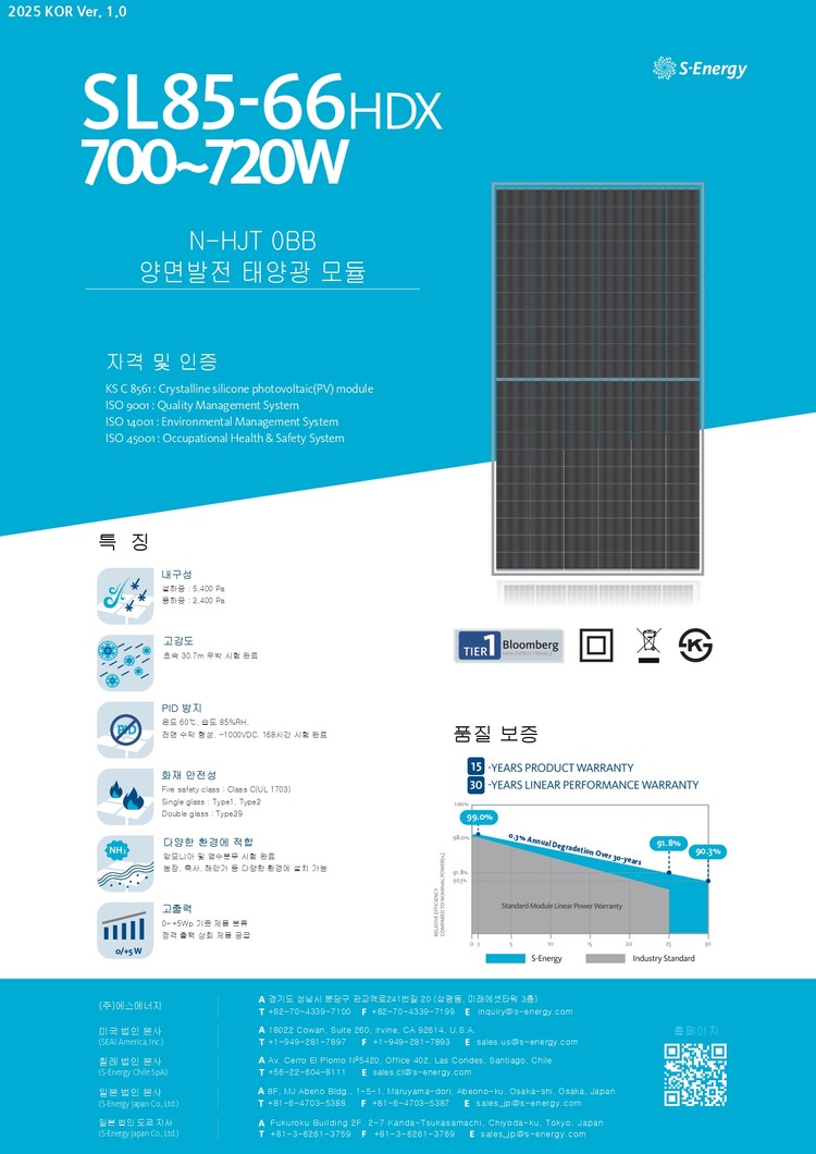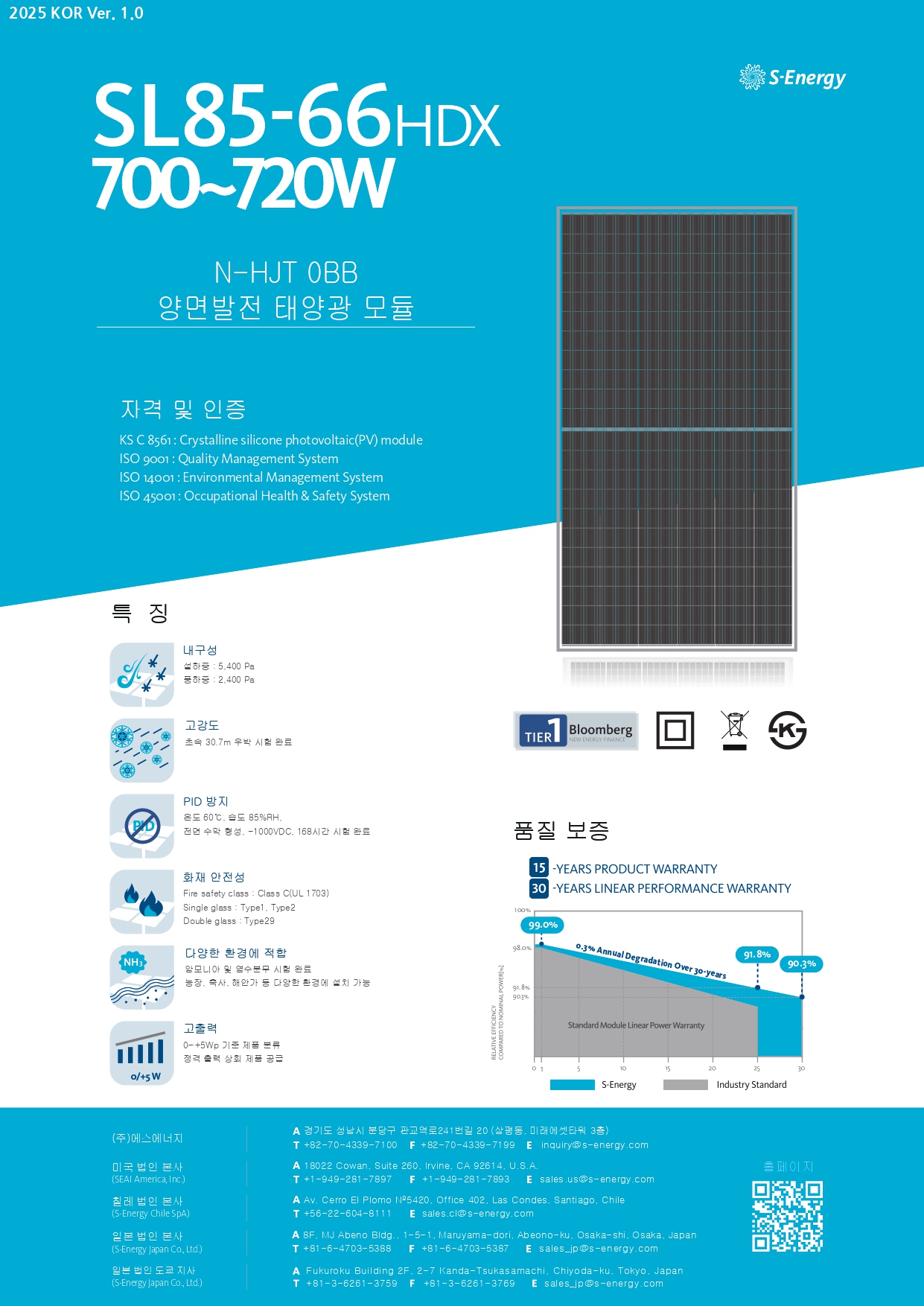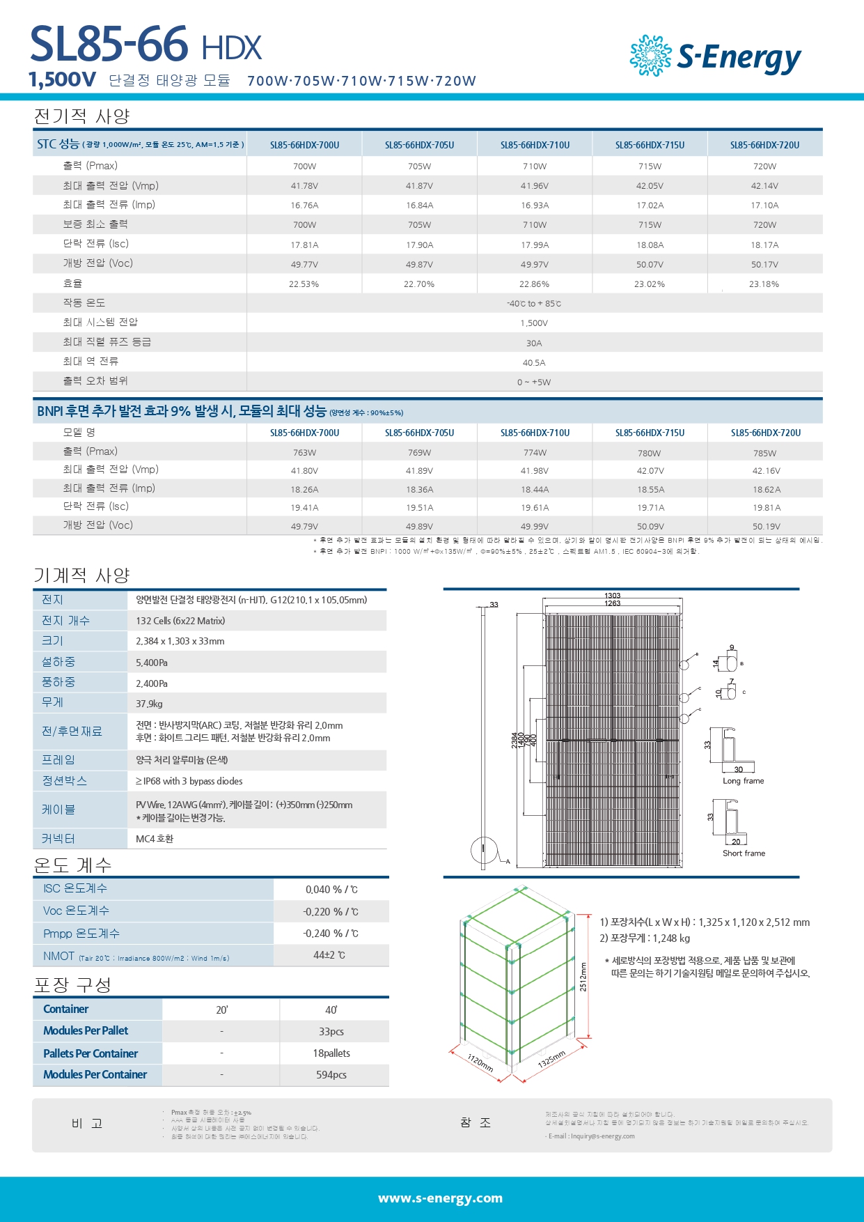 [에스에너지] SL85-66HDX-720U(KS수입인증제품) 태양광 모듈 | 720W | 무등급