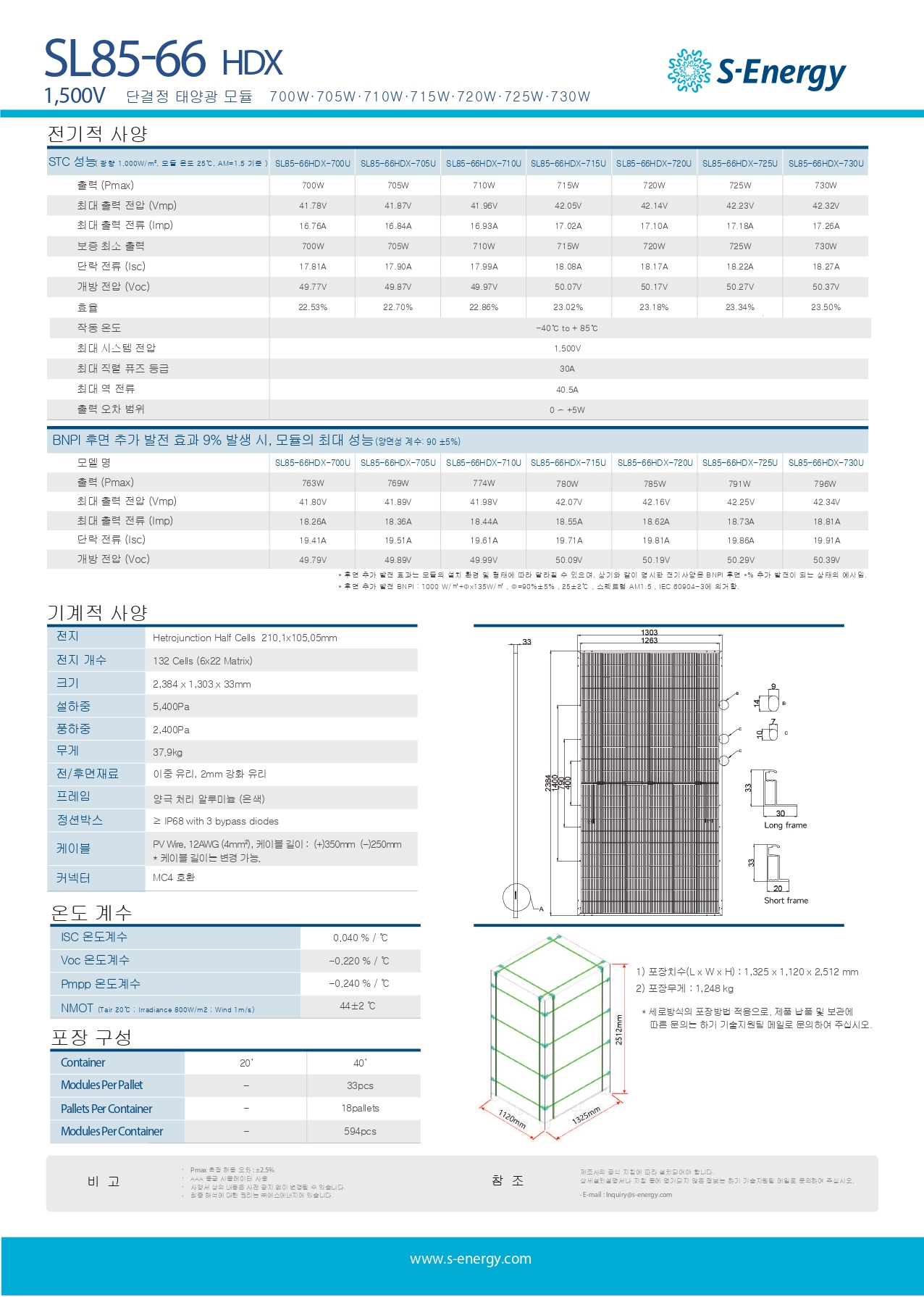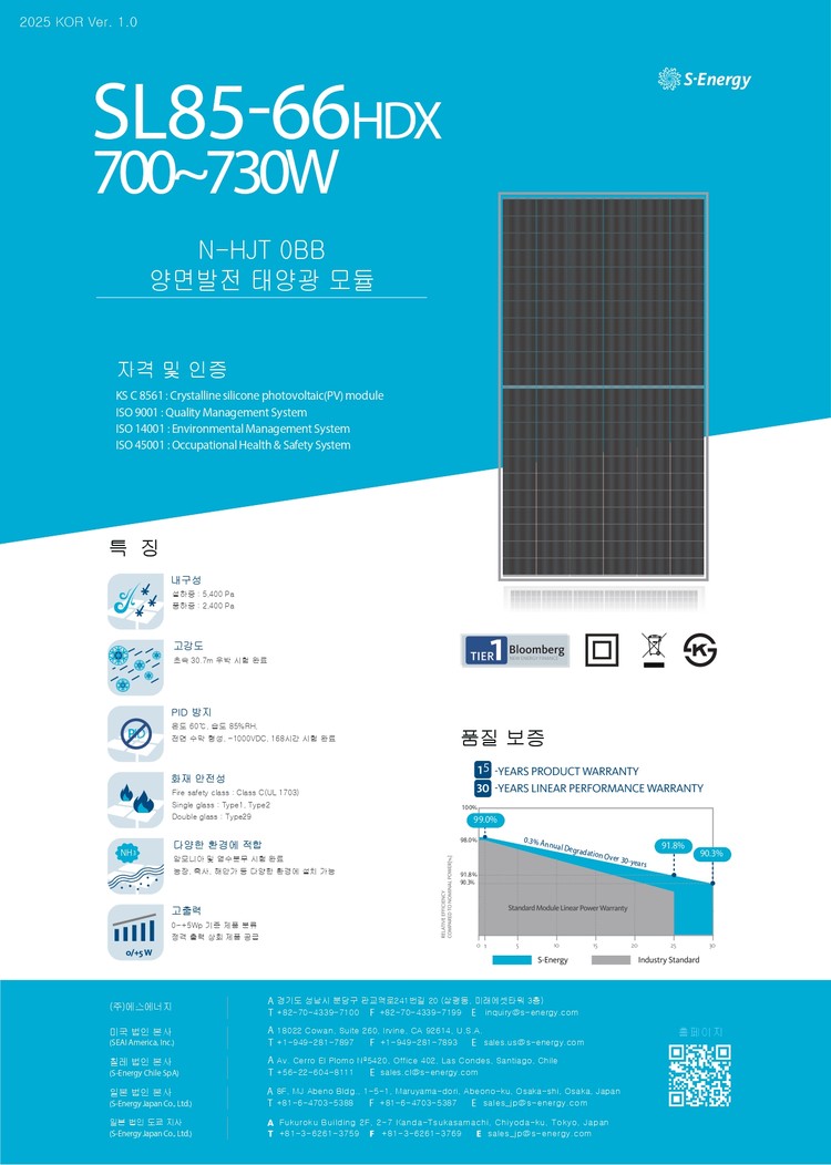 [에스에너지] SL85-66HDX-730U(KS수입인증제품) 태양광 모듈 | 730W | 무등급