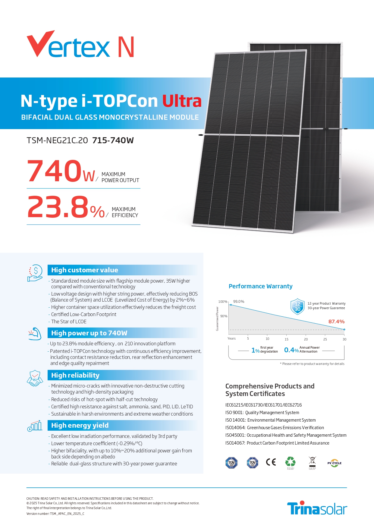 [트리나] TSM-725NEG21C.20K 태양광 모듈 | 725W | 무등급