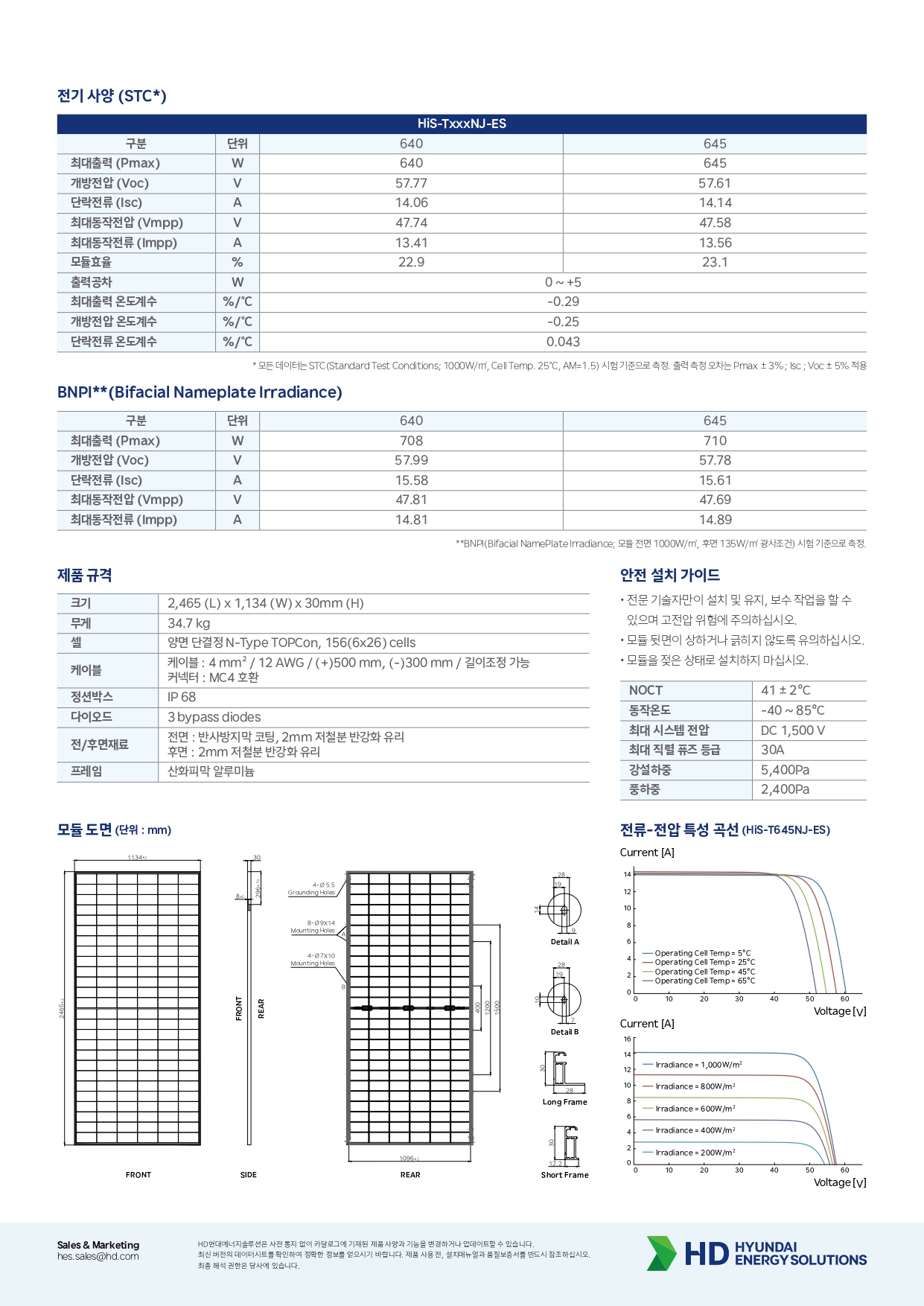 [현대에너지솔루션] HiS-T645NJ-ES 태양광 모듈 | 645W | 2등급