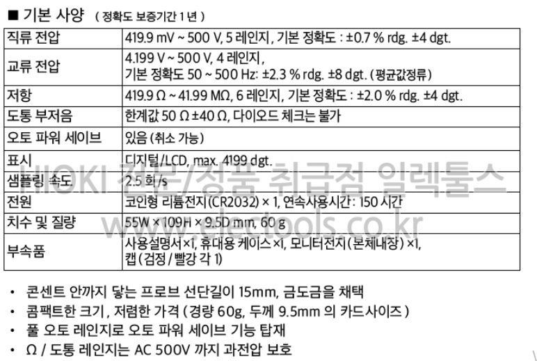 멀티테스터 포켓테스터 3244-60 [500V, 42MΩ] (히오끼)